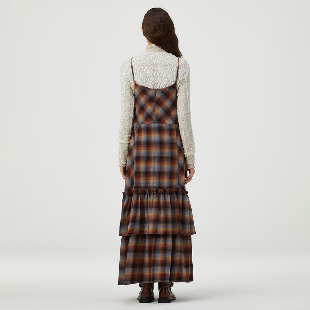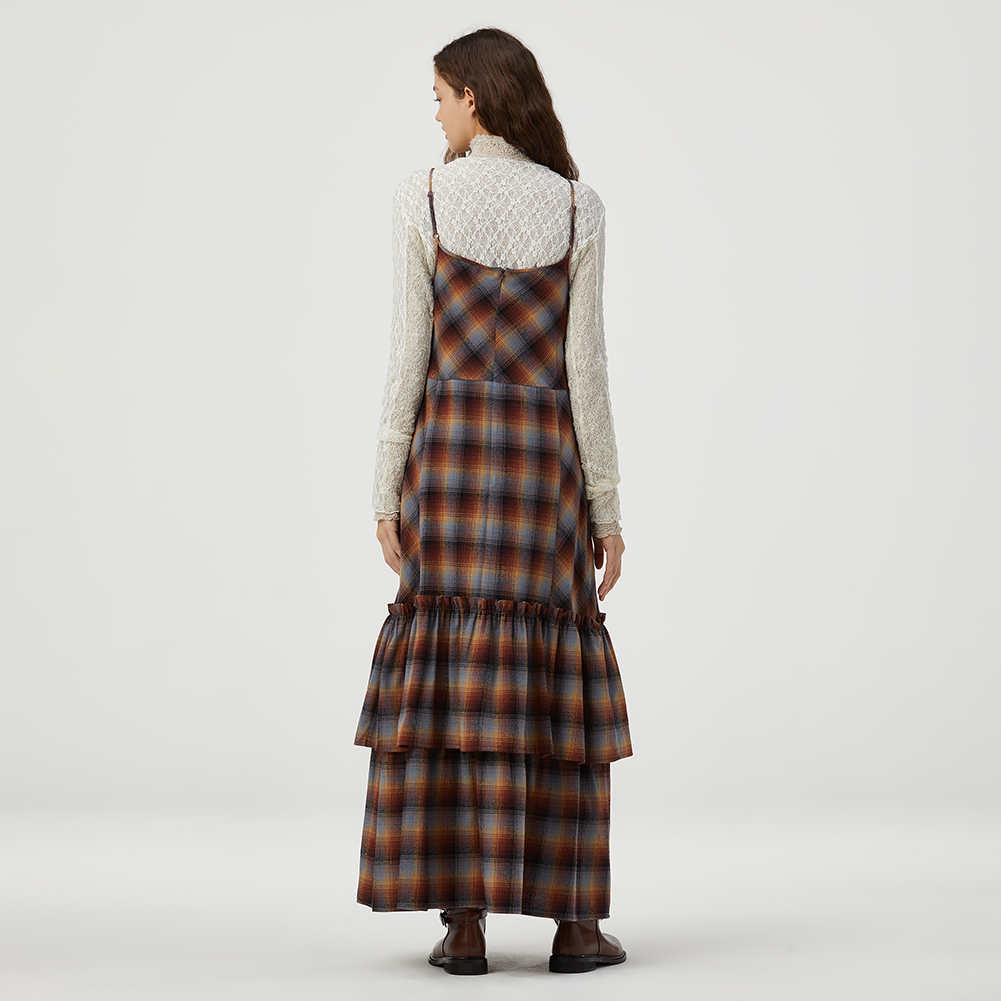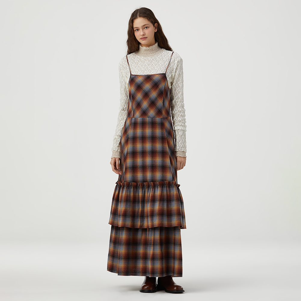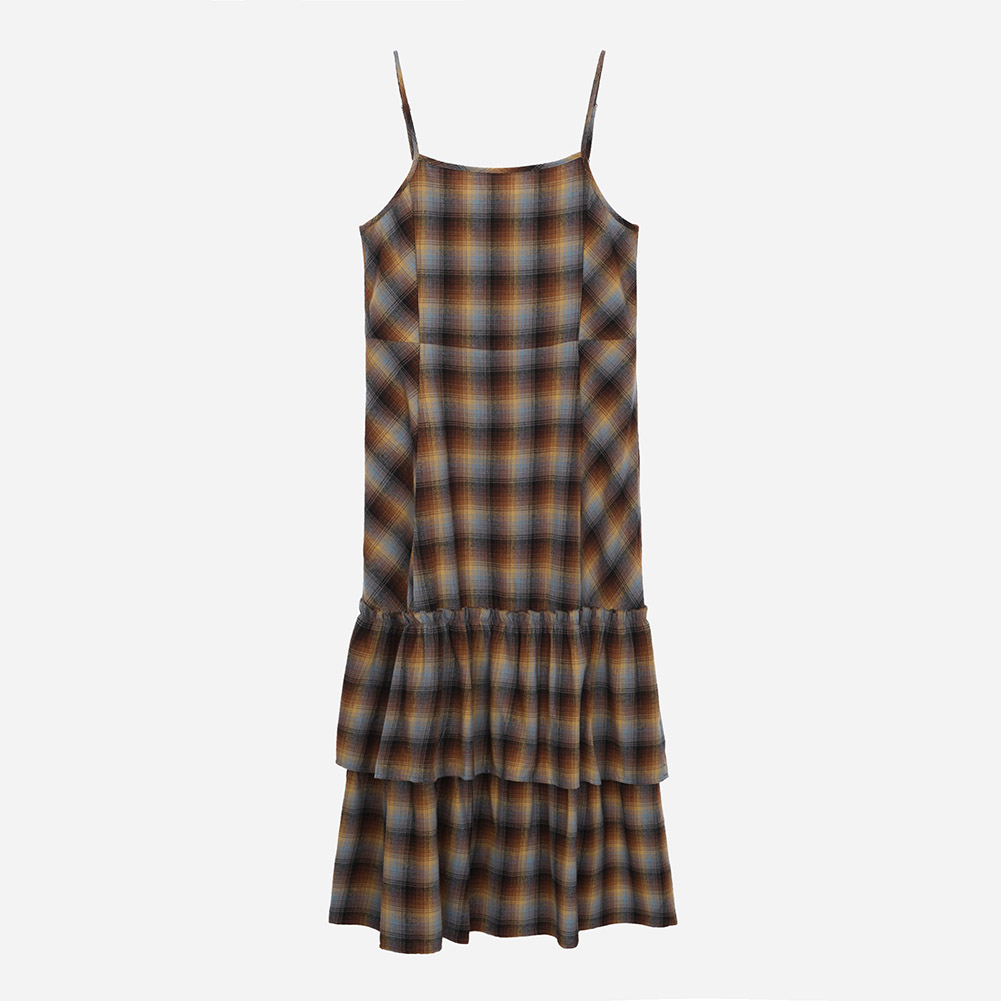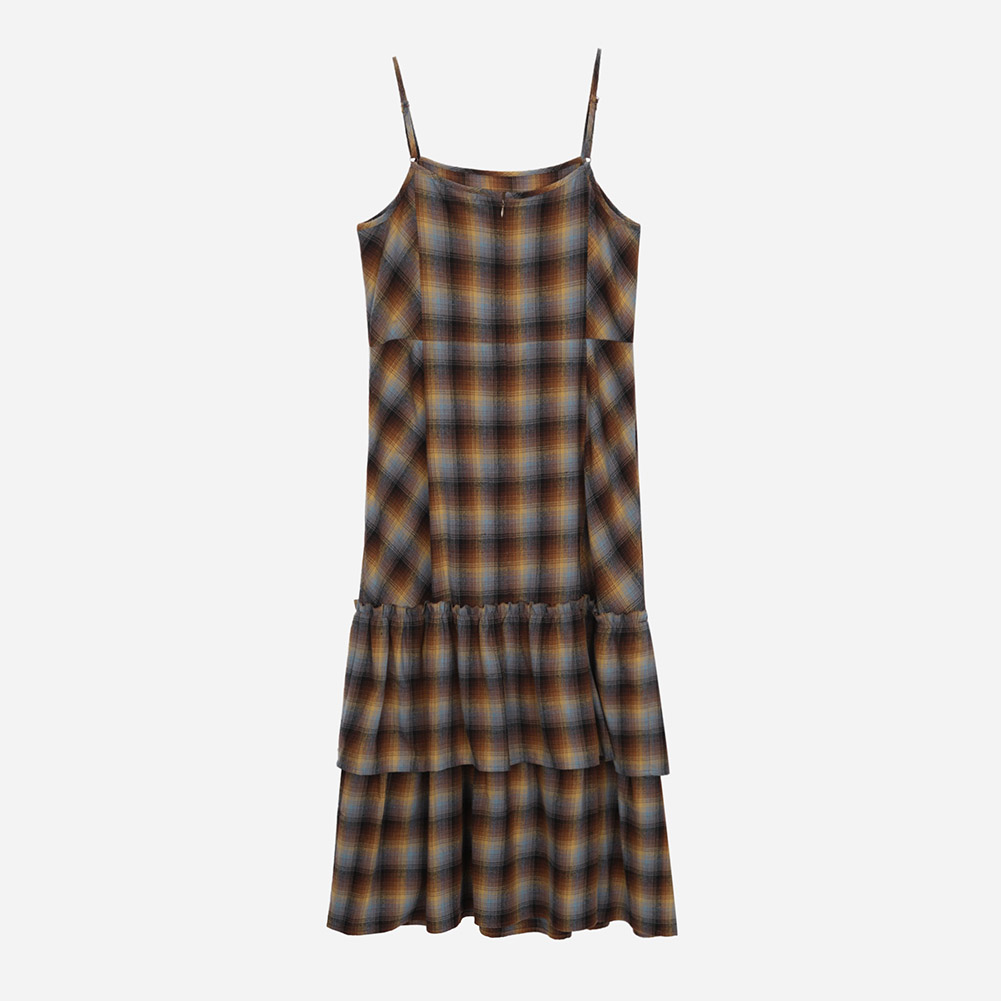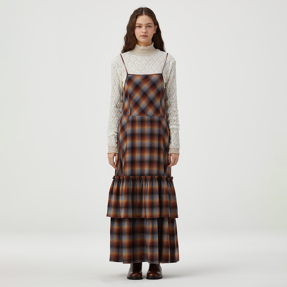 긴 기장감에 이중 프릴단으로 여성스러움을 강조한 아이템.