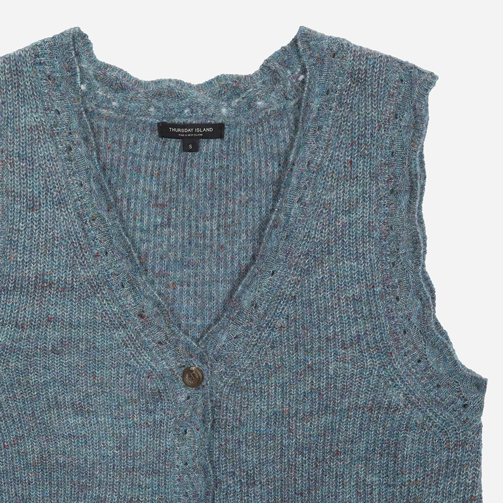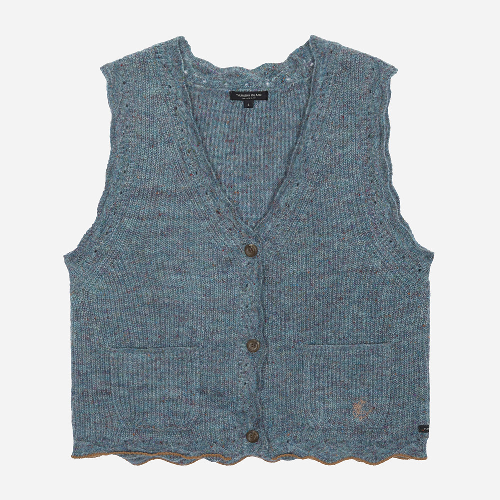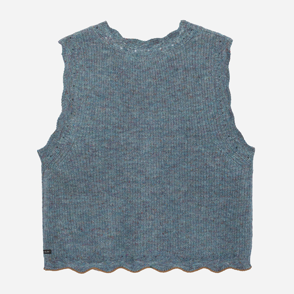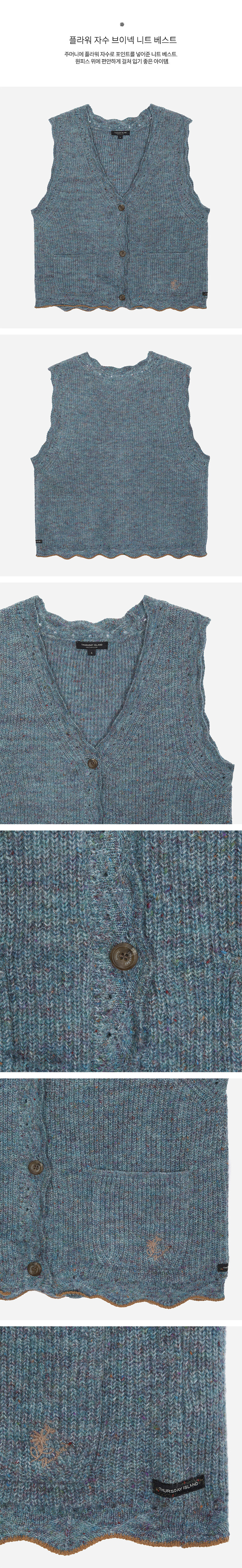 주머니에 플라워 자수로 포인트를 넣어준 니트 베스트.