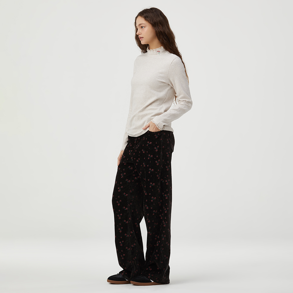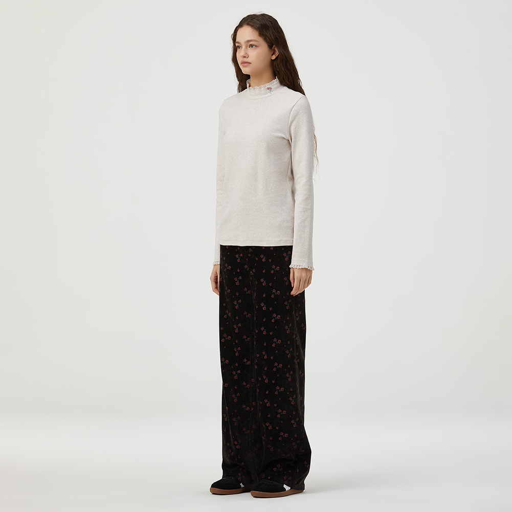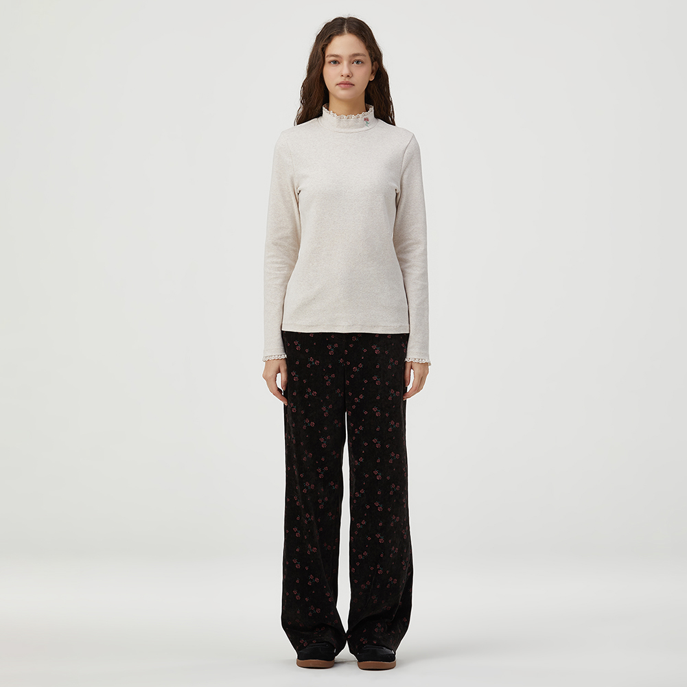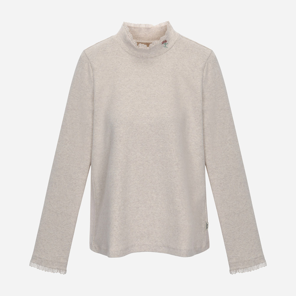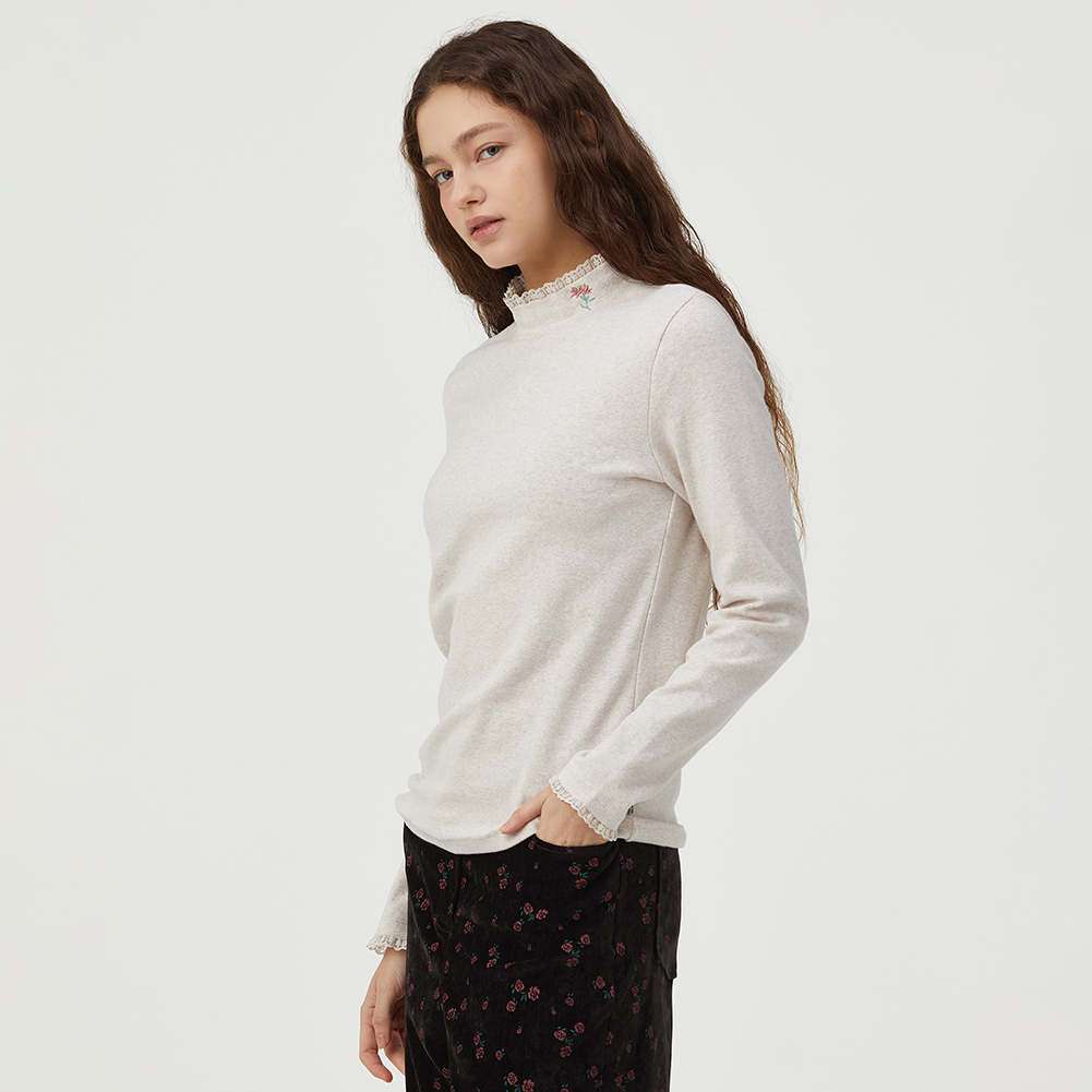 신축성과 포근한 터치감으로 착용감이 좋으며,네크의 컬러 자수가 포인트를 더해주는 아이템.
