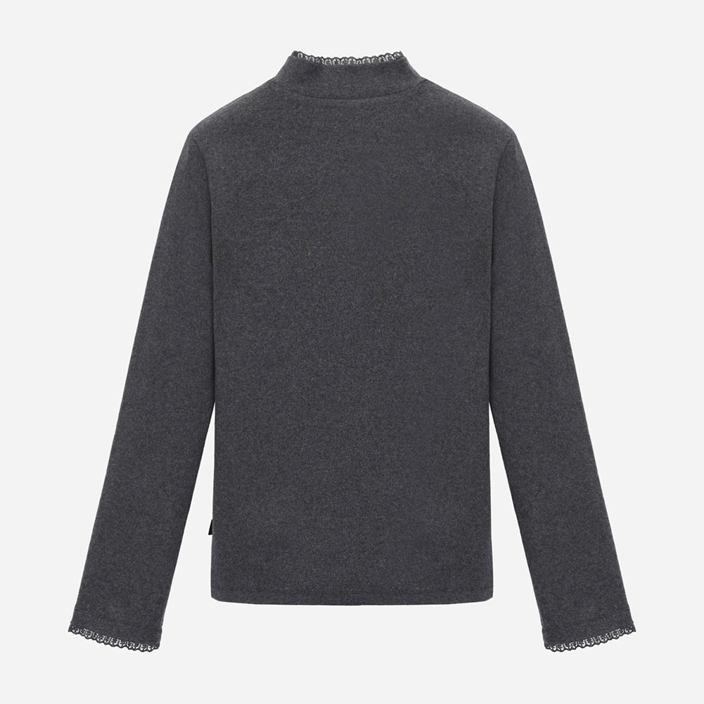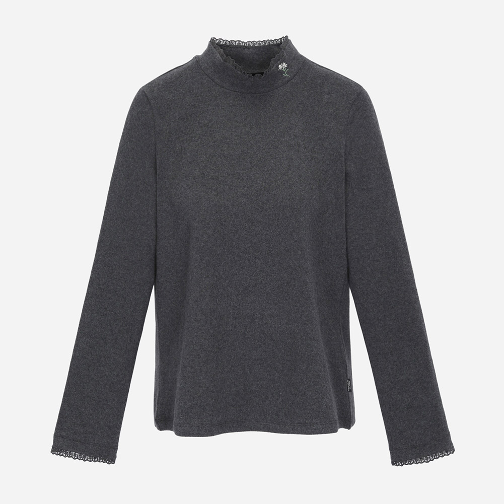 신축성과 포근한 터치감으로 착용감이 좋으며,네크의 컬러 자수가 포인트를 더해주는 아이템.