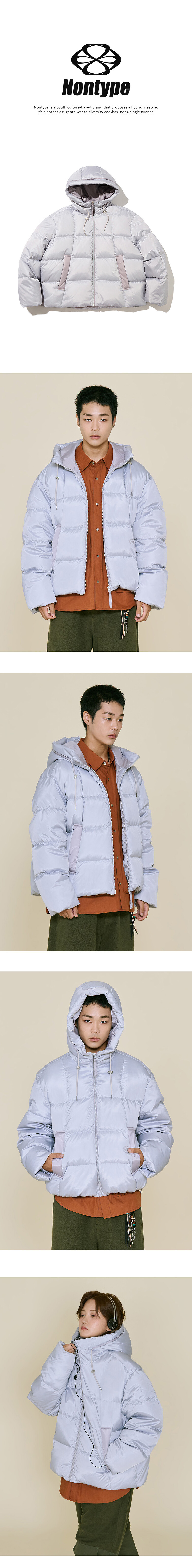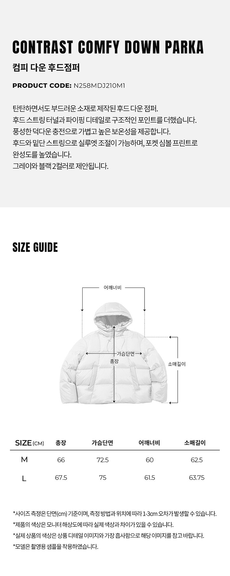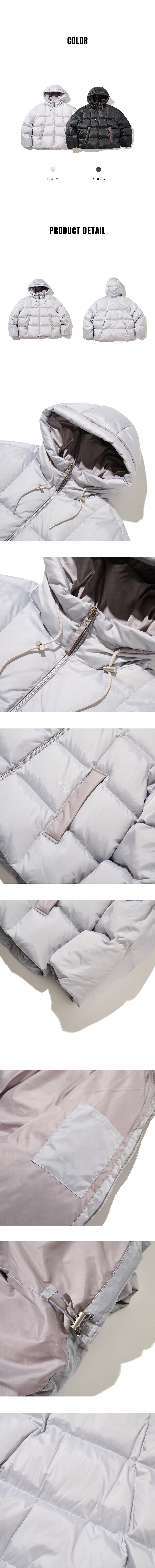 라이트그레이 : 겉감 폴리에스터100%, 배색 폴리에스터100%, 안감 폴리에스터100%, 충전재 오리털(솜털)80%, 오리털(깃털)20%