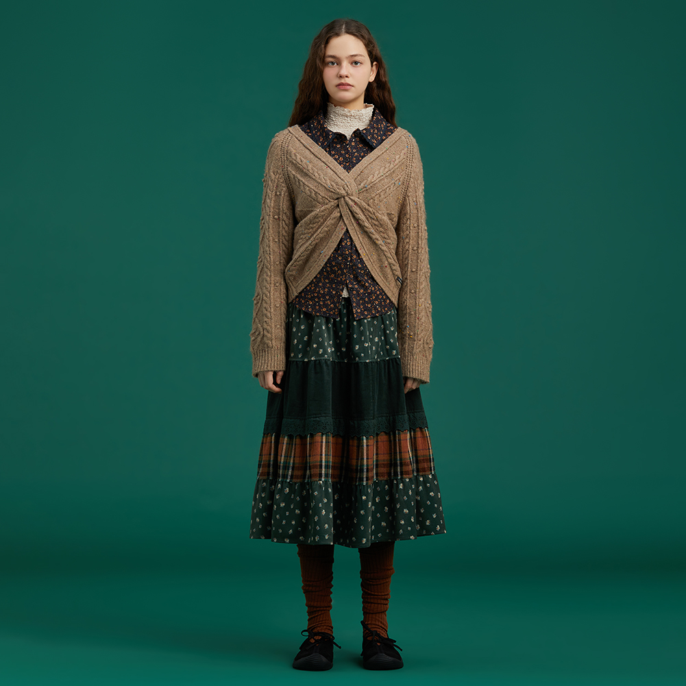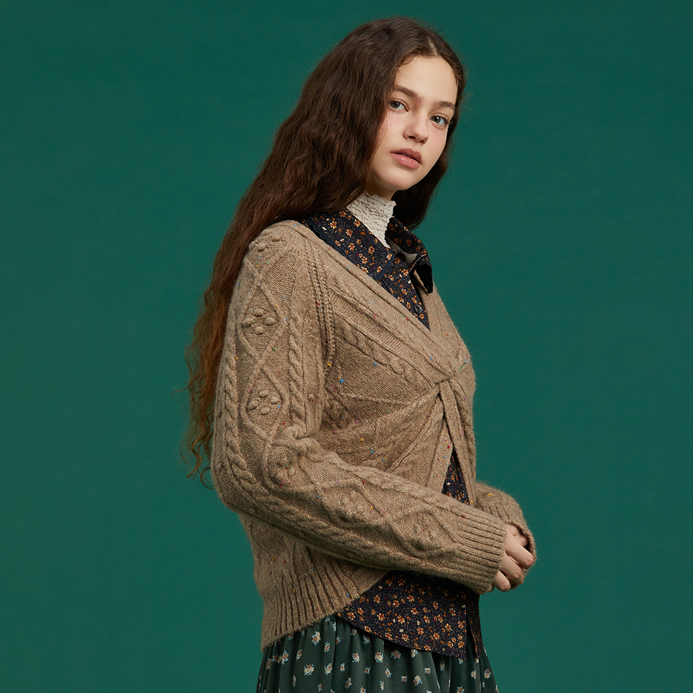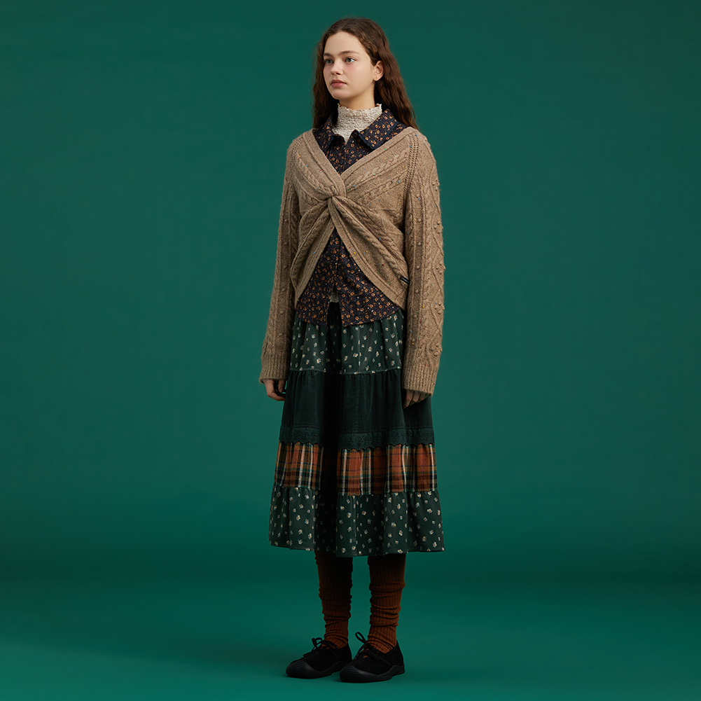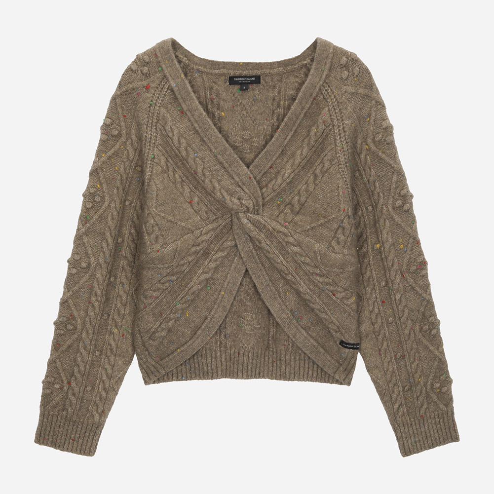 다채로운 컬러감의 네프사가 포인트인 니트 풀오버.앞판 중심에 꼬임으로 포인트를 주었으며,다양한 원피스와 레이어드하기 용이한 아이템.