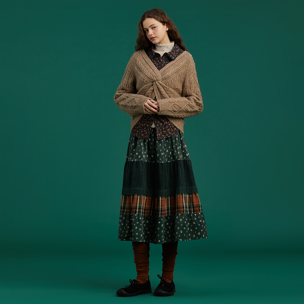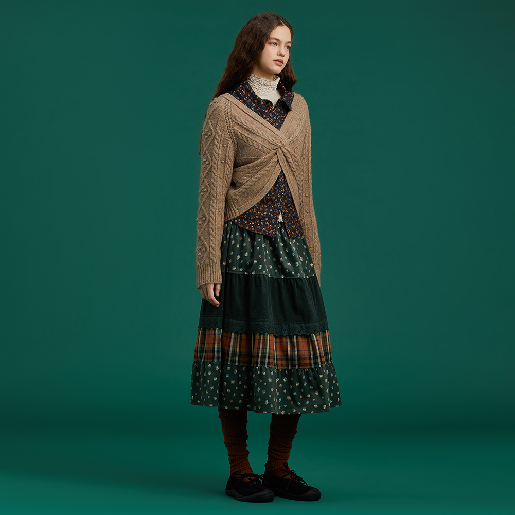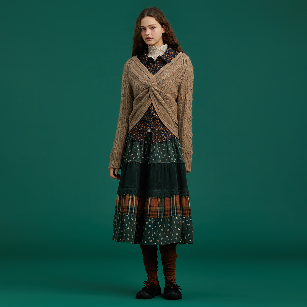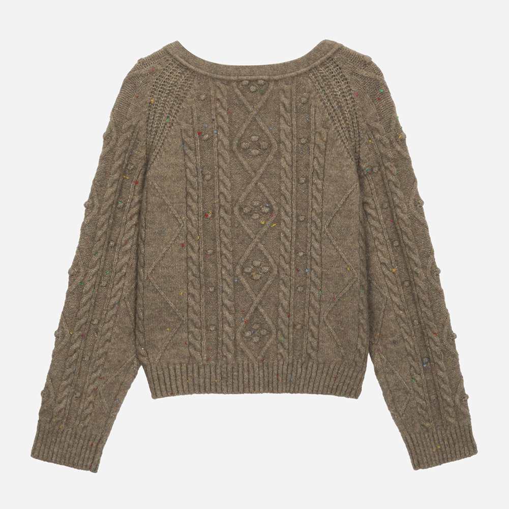 다채로운 컬러감의 네프사가 포인트인 니트 풀오버.앞판 중심에 꼬임으로 포인트를 주었으며,다양한 원피스와 레이어드하기 용이한 아이템.