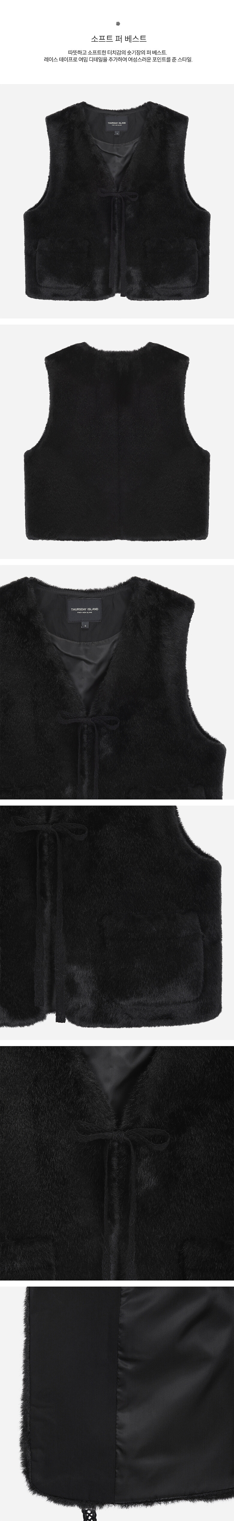 레이스 테이프로 여밈 디테일을 추가하여 여성스러운 포인트를 준 스타일.