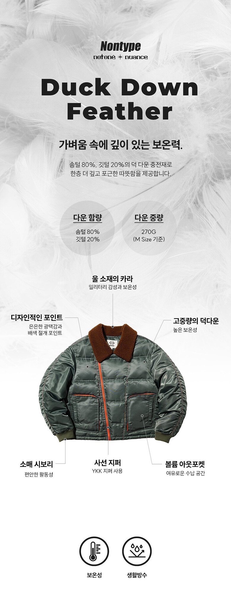 - MA-1 항공점퍼에 바이커 자켓 무드를 믹스한 논타입만의 감성으로 재해색한 온리원 아이템