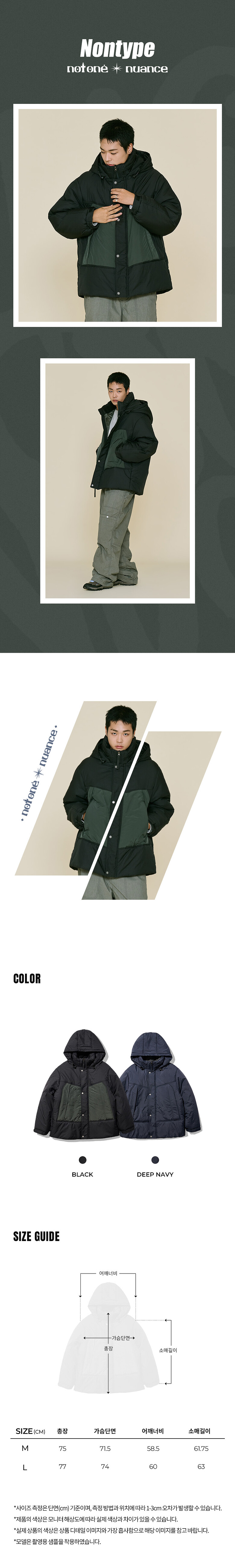블랙 : 겉감 나일론100%, 배색 나일론100%, 안감 폴리에스터100%, 충전재 폴리에스터100%