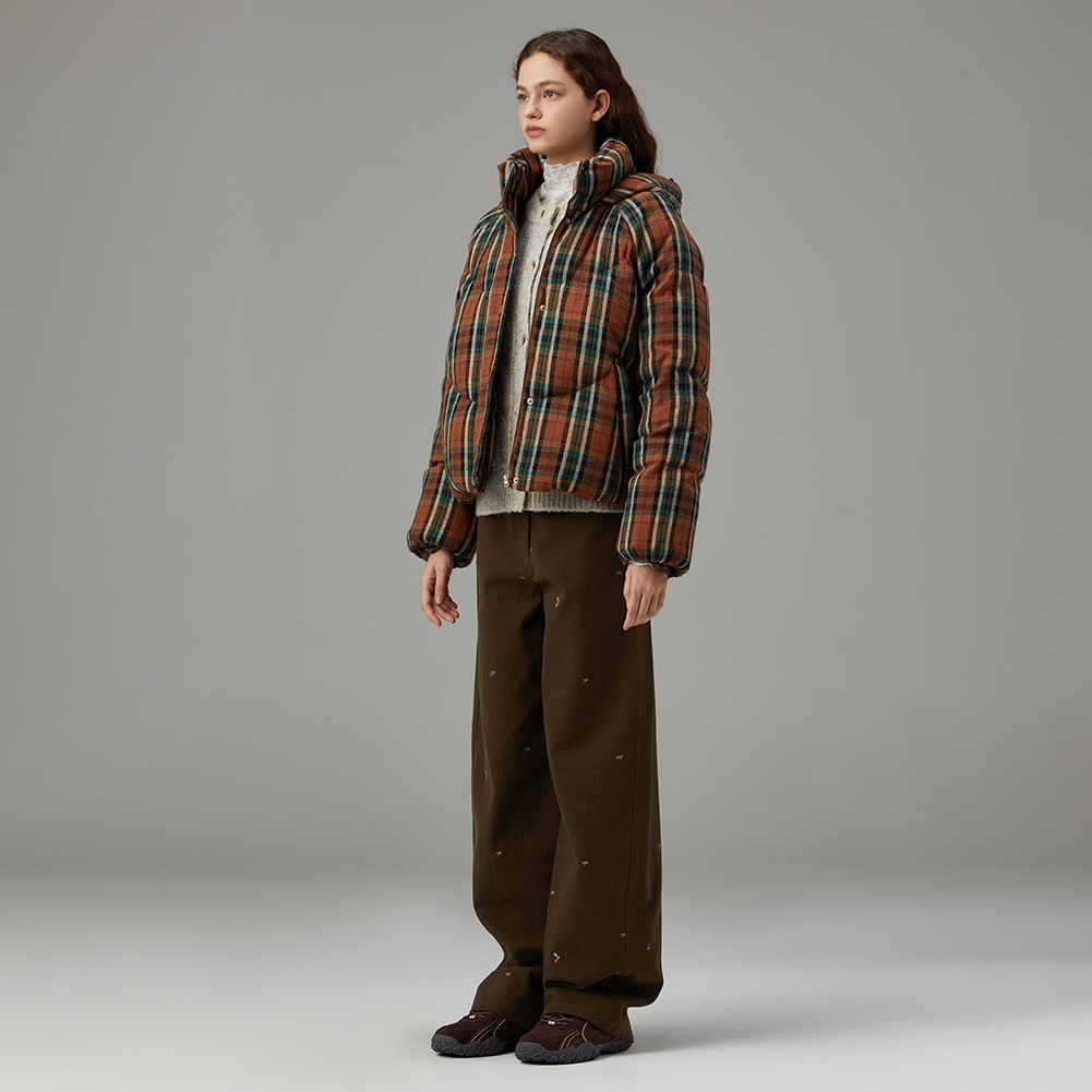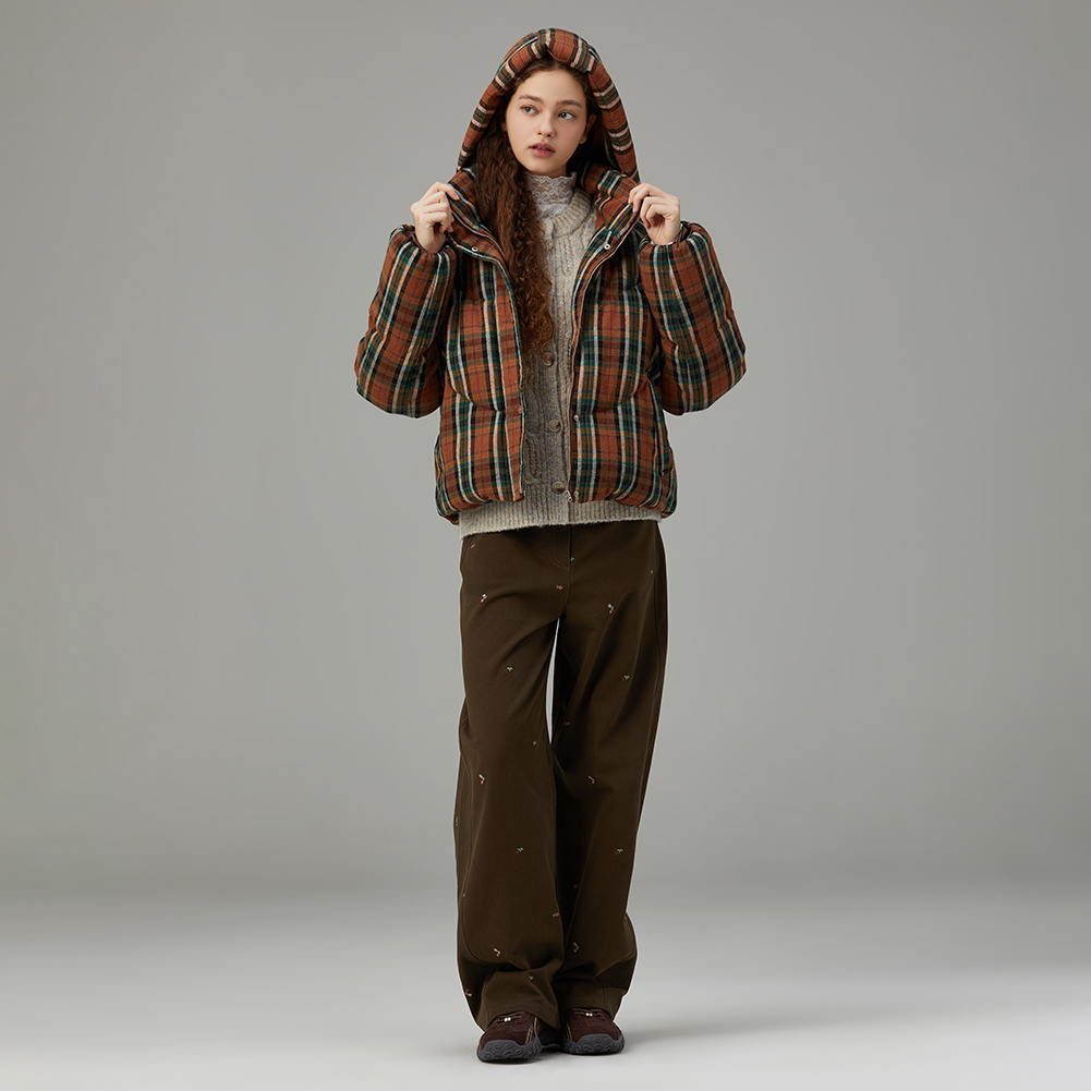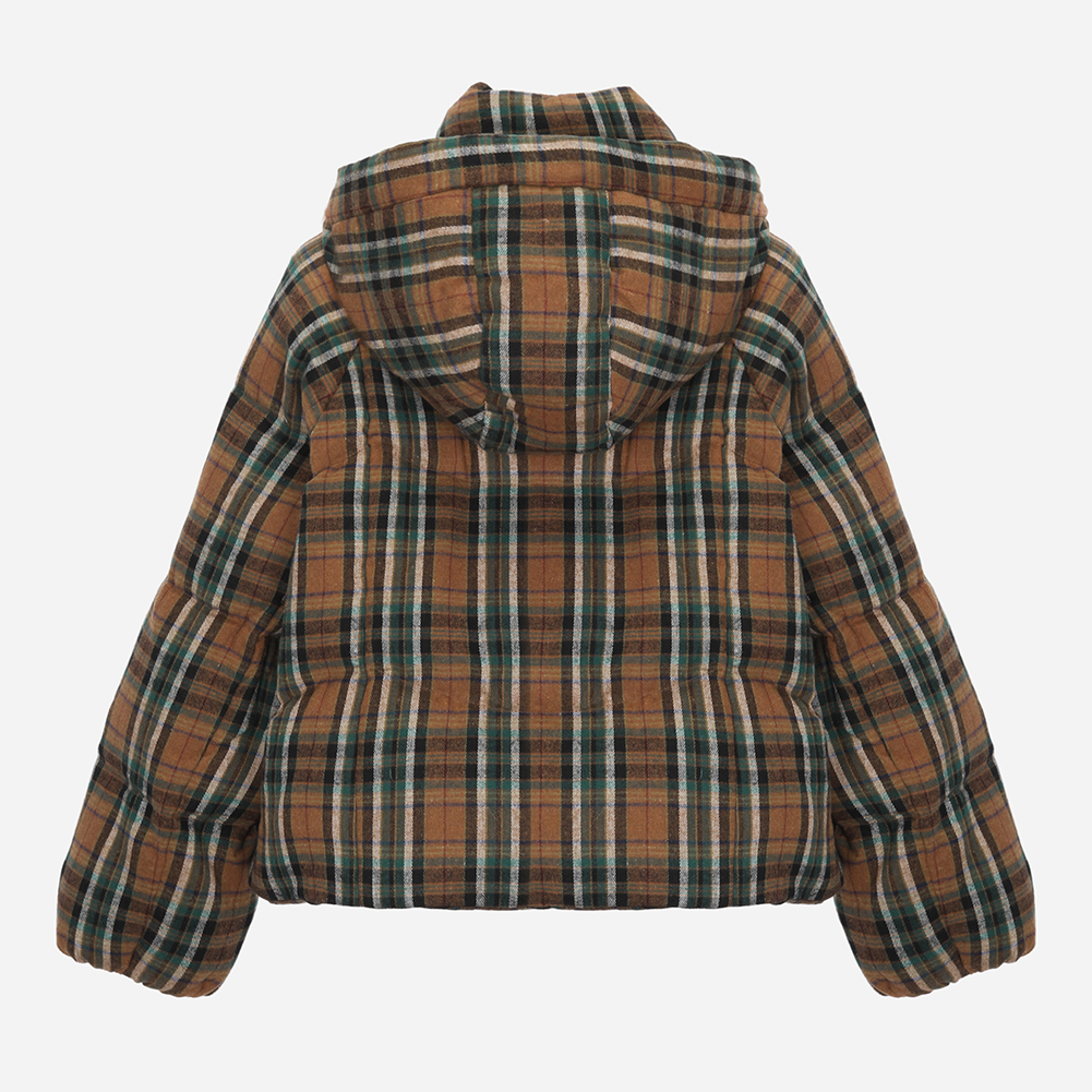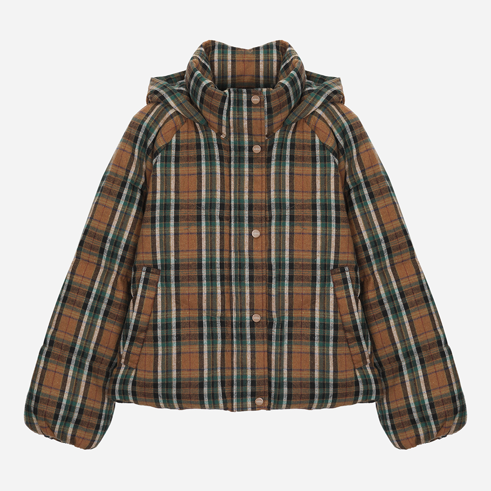 체크 후드 덕 다운 점퍼