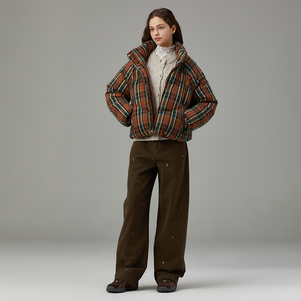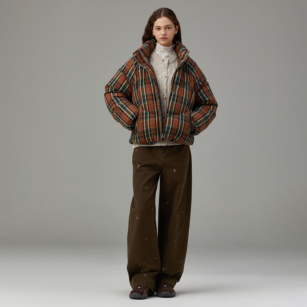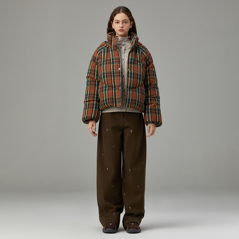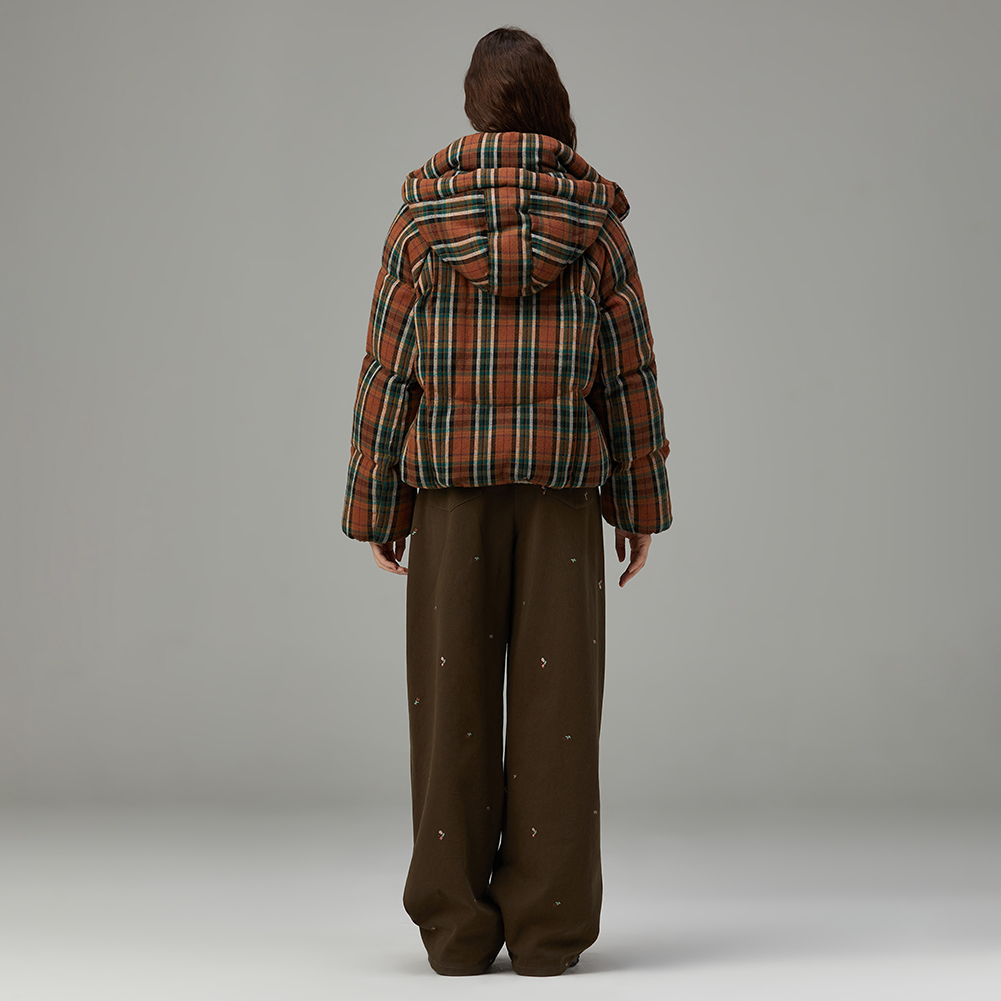 체크 후드 덕 다운 점퍼