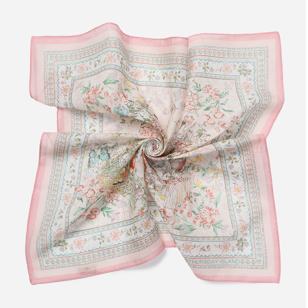 꽃과 나비,보더의 조화가 고풍스러운 반다나.