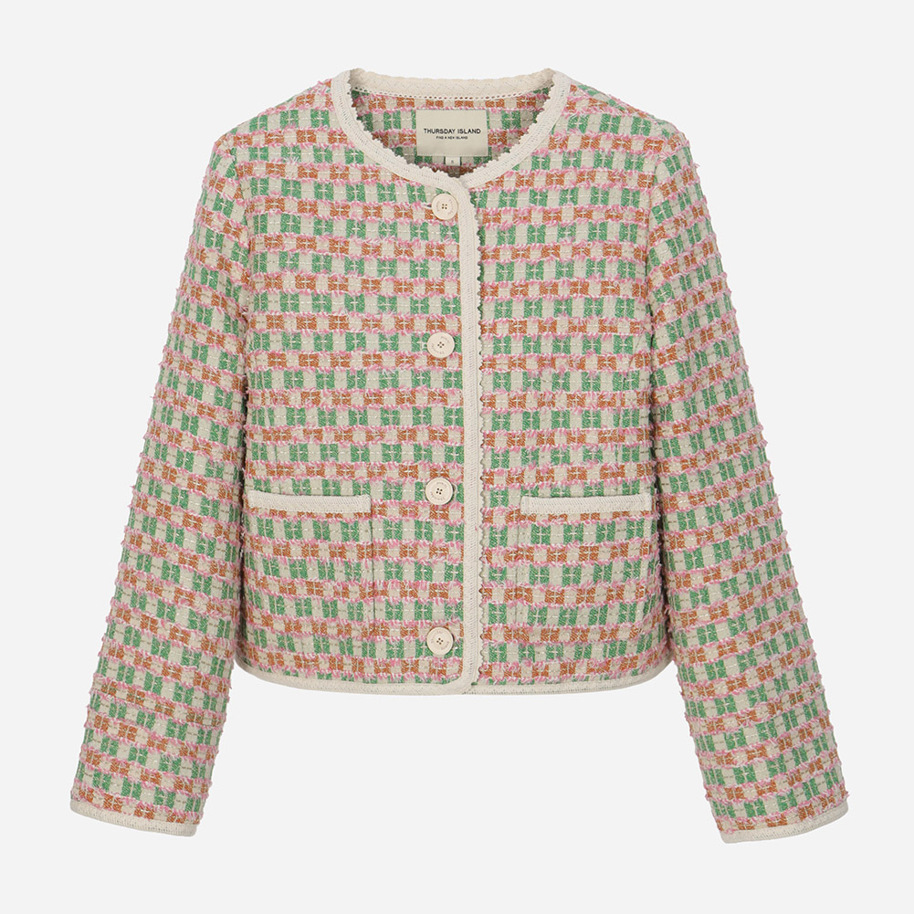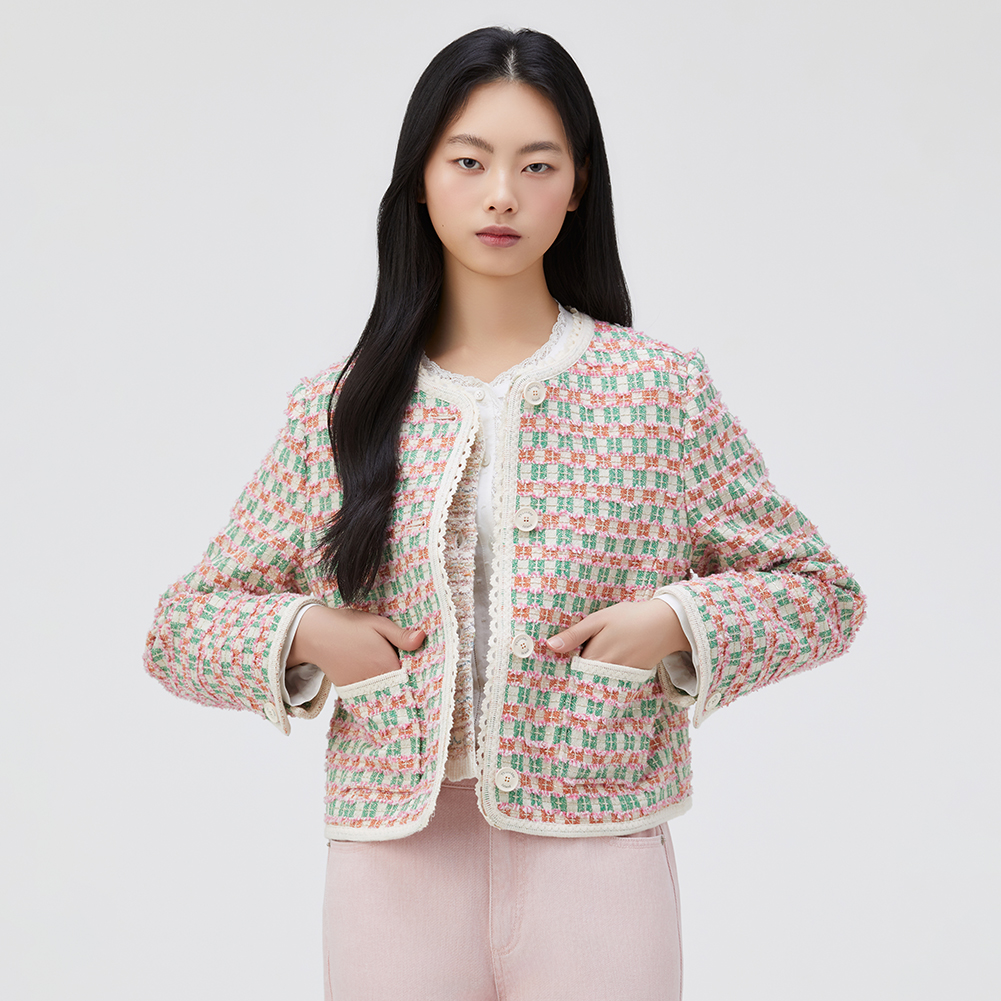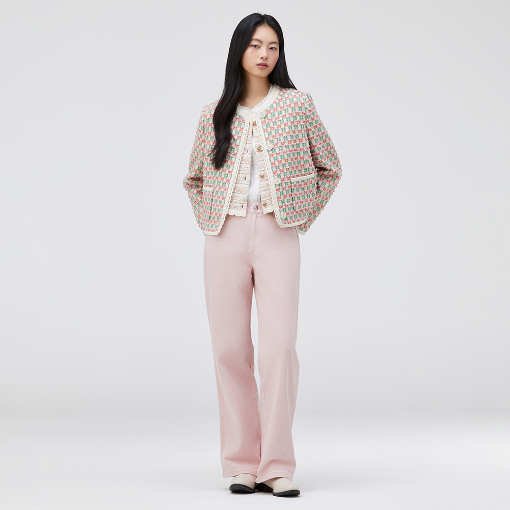 그린 : 겉감 면52%, 폴리에스터32%, 아크릴9%, 모3%, 레이온2%, 나일론2%, 안감 폴리에스터100%