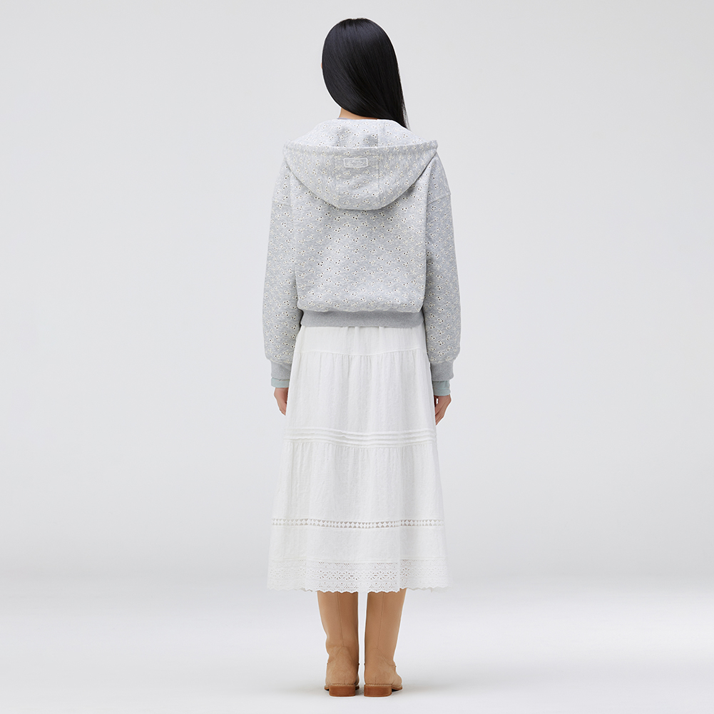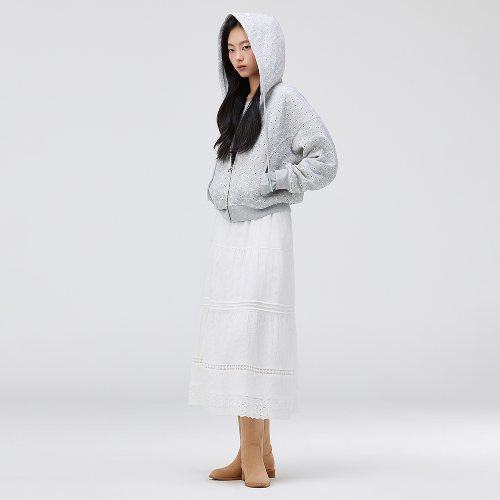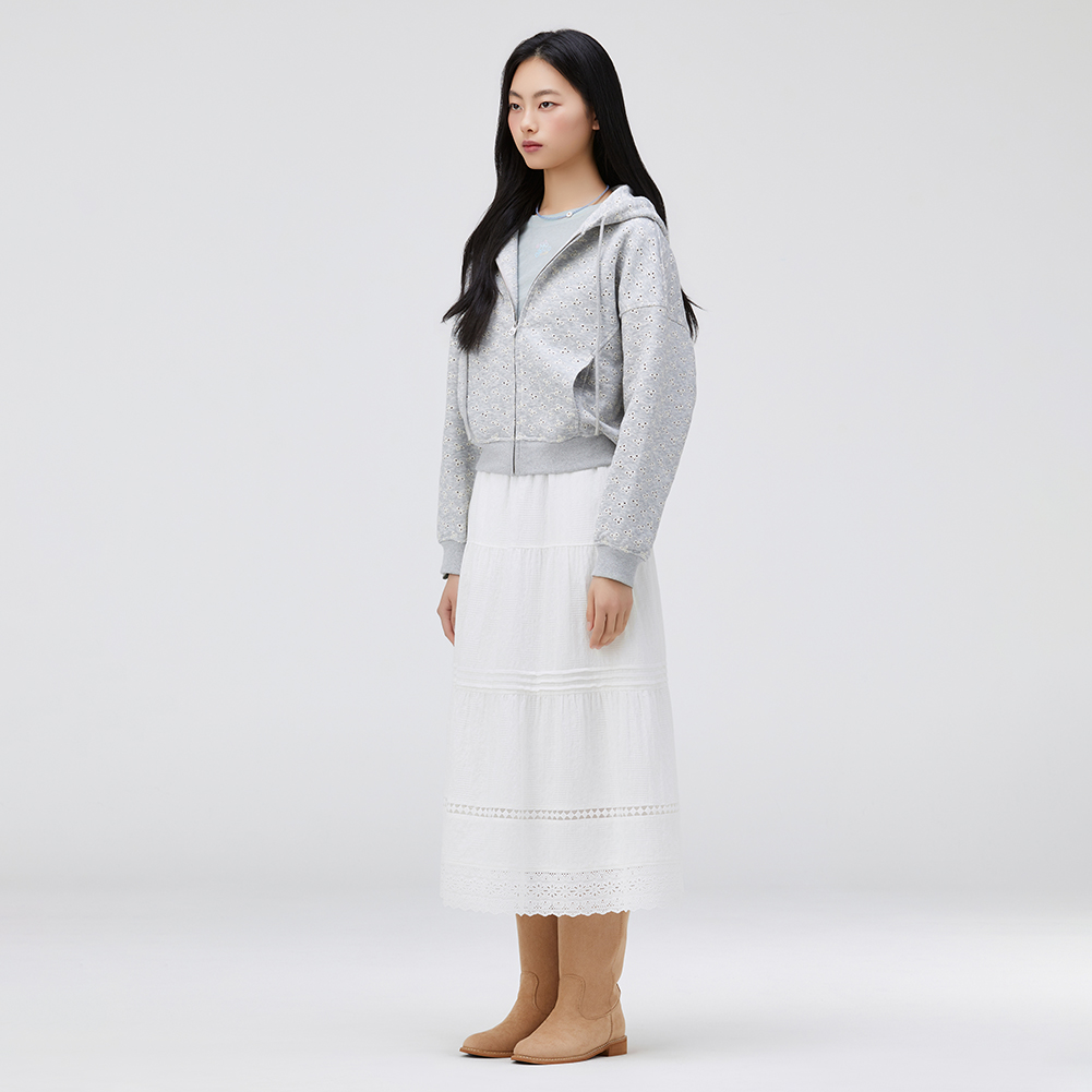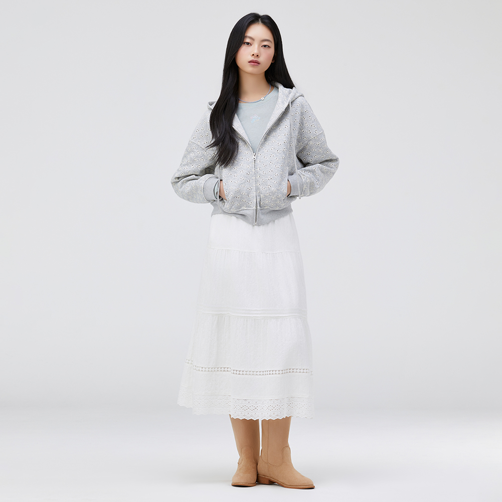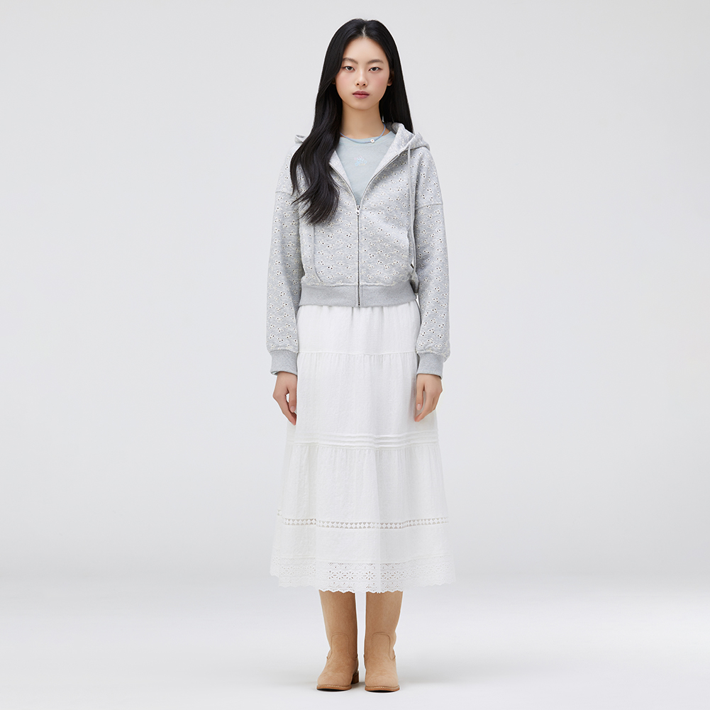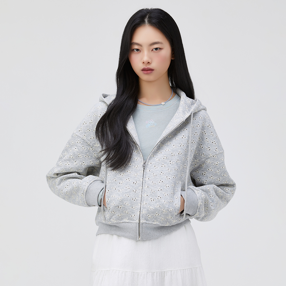 그레이 : 겉면 폴리에스터50%, 면50%, 이면 폴리에스터95%, 폴리우레탄5%, 배색 면48%, 폴리에스터47%, 폴리우레탄5%
