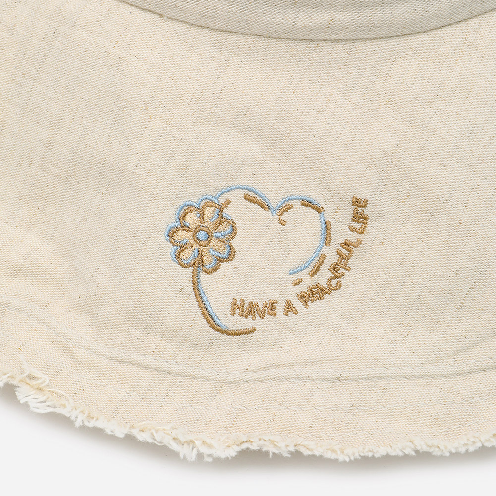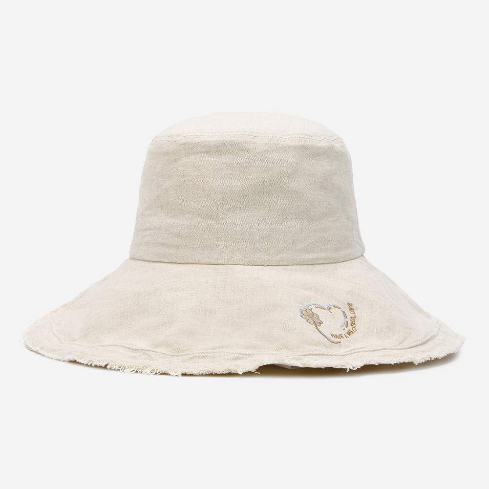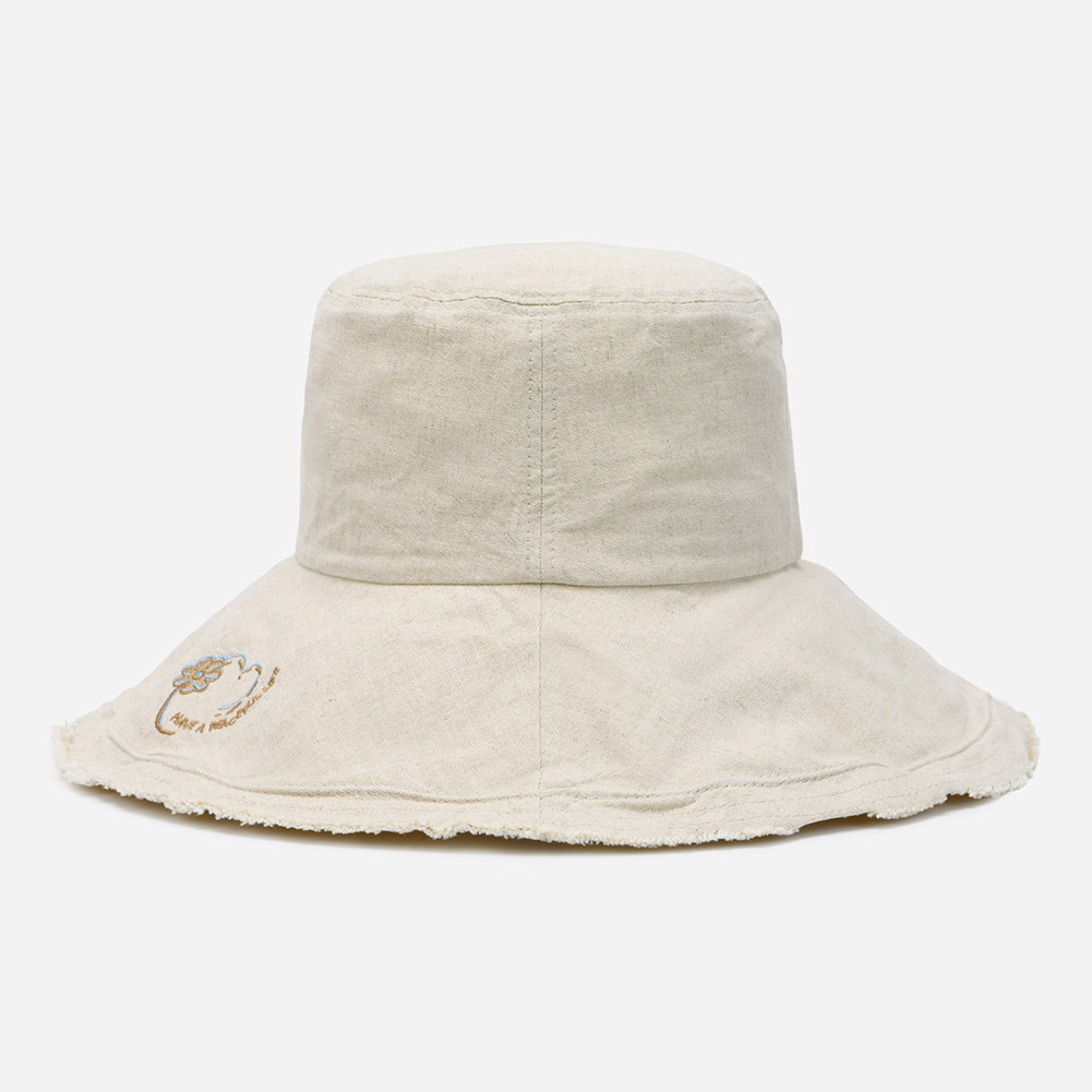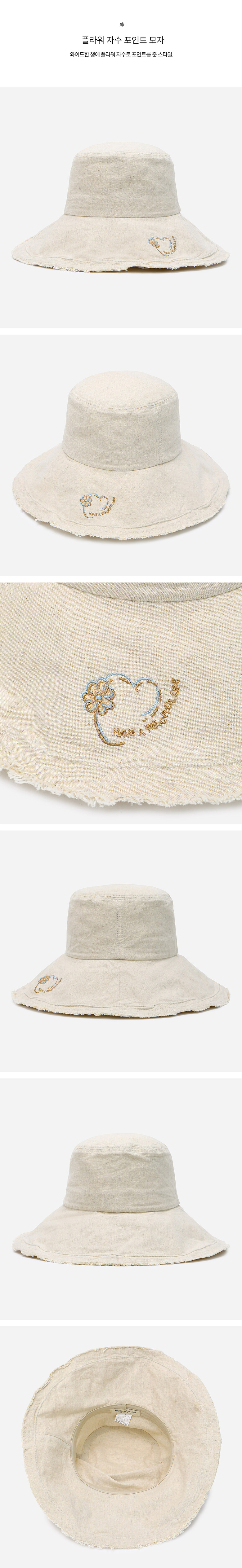 와이드한 챙에 플라워 자수로 포인트를 준 스타일.