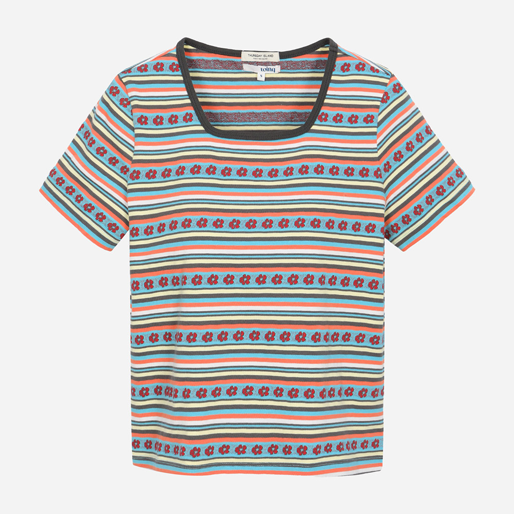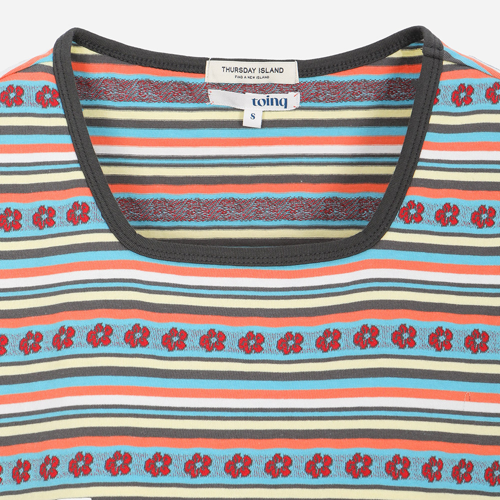 배색 립으로 포인트를 주었으며,사이사이 플라워 모티브가 키치한 무드를 더해주는 아이템.