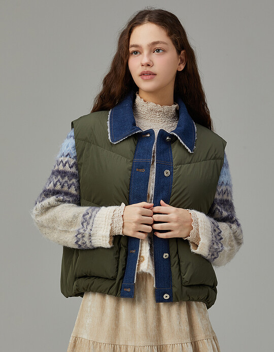 Thursday Island[KiiiKiii 착용] 데님 믹스 덕 다운 베스트