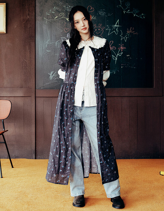 Thursday Island[KiiiKiii 착용] 플라워 라운드 넥 미디 원피스