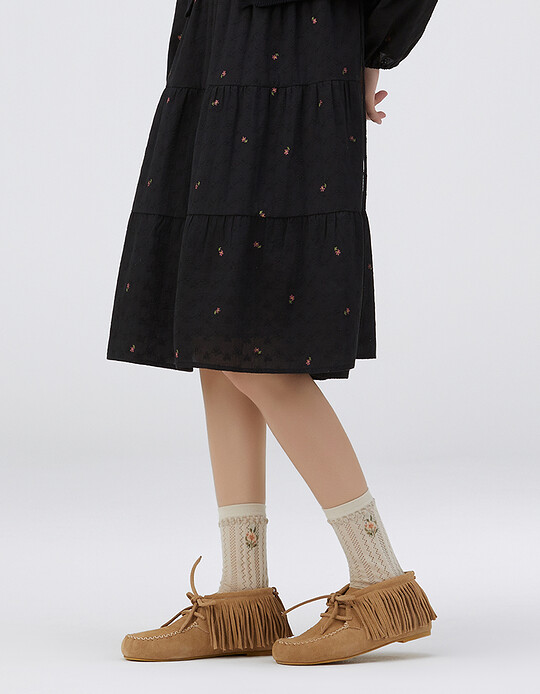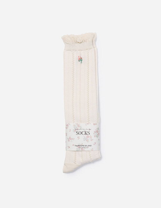 포인트 잔꽃 자카드 니삭스