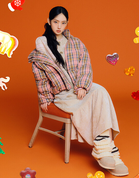 Thursday Island깅엄체크 밴딩 레이어드 스커트
