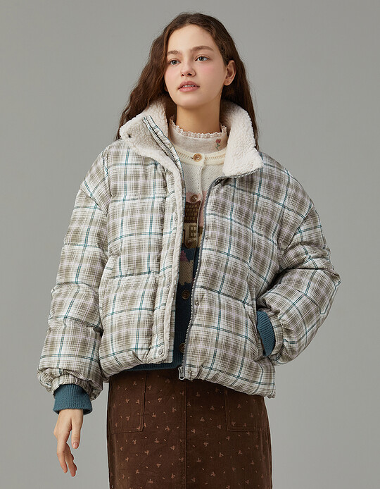 Thursday Island[KiiiKiii 착용] 체크 후드 덕 다운 점퍼