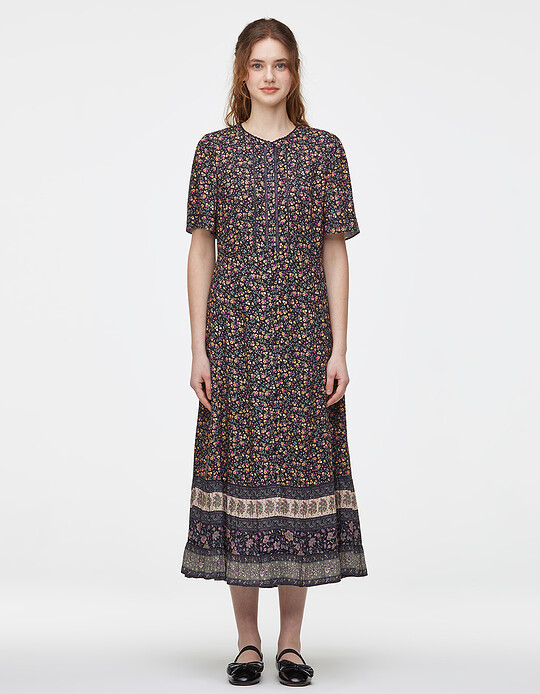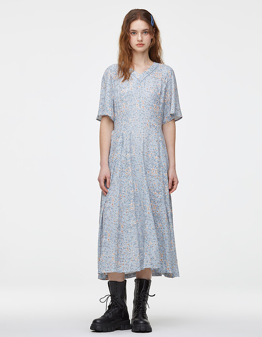 Thursday Island플라워 핀턱 기모 티어드 원피스