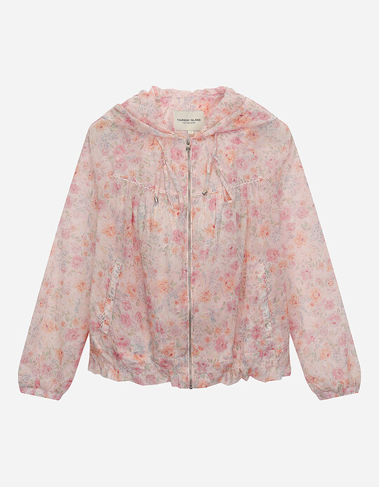 Thursday Island[KiiiKiii 착용] 플라워 패턴 믹스 후드점퍼
