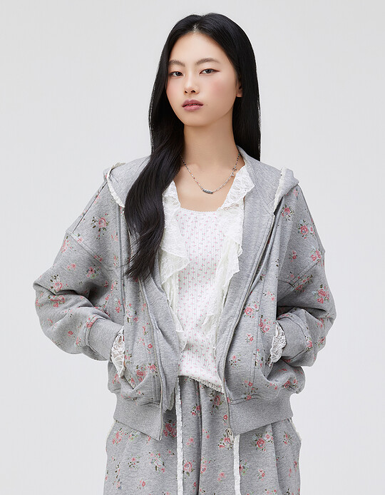 Thursday Island[KiiiKiii 착용] 플라워 후드 집업