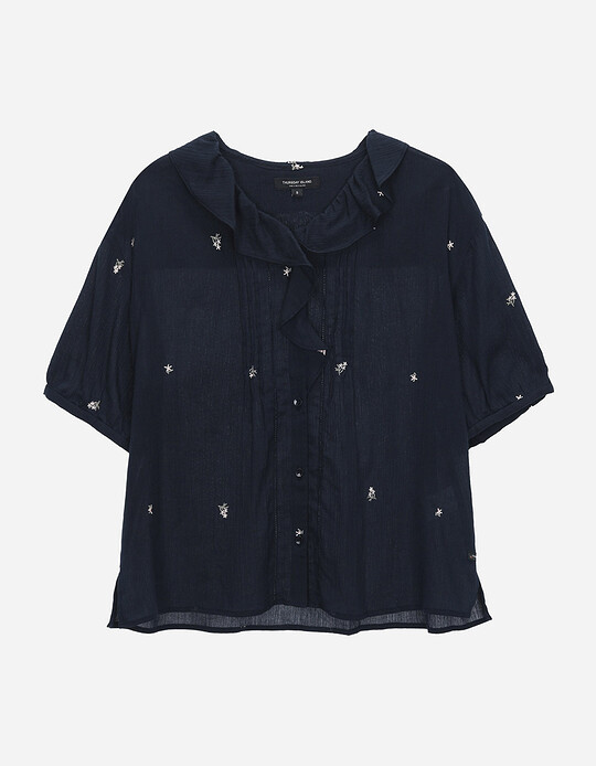 Thursday Island플라워 패턴 스퀘어 넥 블라우스